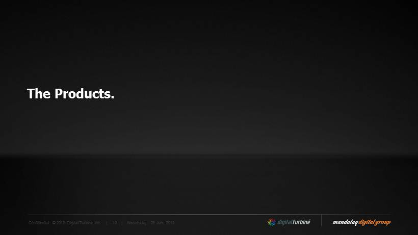 Confidential. © 2013 Digital Turbine, Inc. | | Wednesday, 26 June 2013 10 The Products.