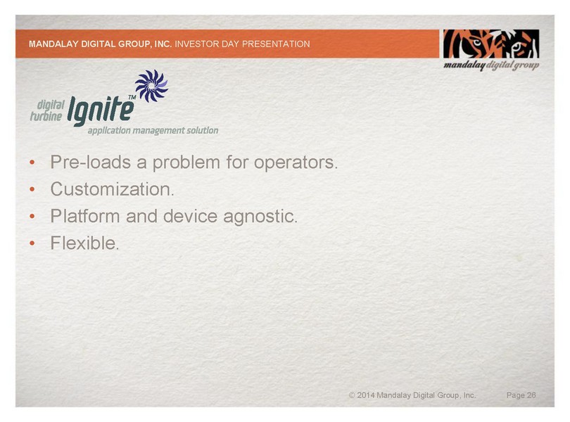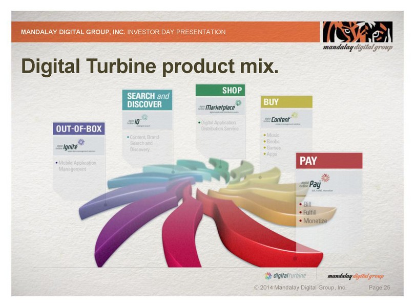 Digital Turbine product mix. MANDALAY DIGITAL GROUP, INC. INVESTOR DAY PRESENTATION © 2014 Mandalay Digital Group, Inc. Page 25
