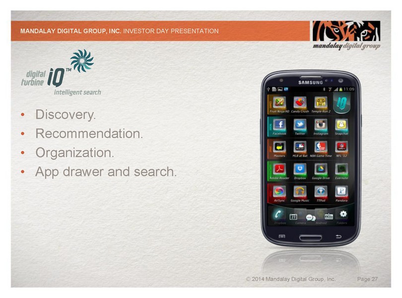 • Discovery. • Recommendation. • Organization. • App drawer and search. MANDALAY DIGITAL GROUP, INC. INVESTOR DAY PRESENTATION © 2014 Mandalay Digital Group, Inc. Page 27