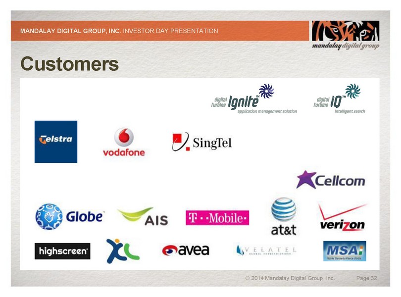 Customers MANDALAY DIGITAL GROUP, INC. INVESTOR DAY PRESENTATION © 2014 Mandalay Digital Group, Inc. Page 32
