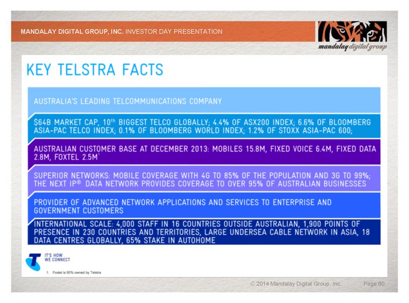 MANDALAY DIGITAL GROUP, INC. INVESTOR DAY PRESENTATION © 2014 Mandalay Digital Group, Inc. Page 60