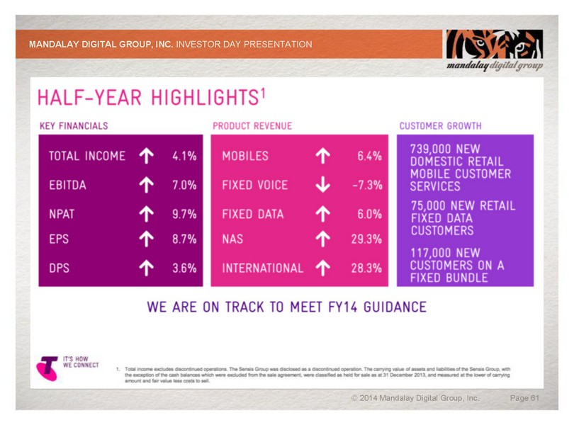 MANDALAY DIGITAL GROUP, INC. INVESTOR DAY PRESENTATION © 2014 Mandalay Digital Group, Inc. Page 61