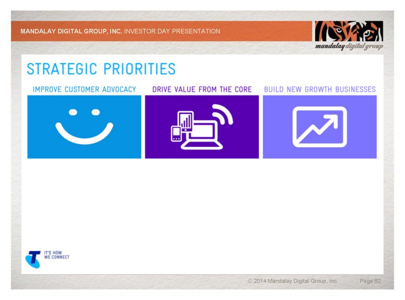 MANDALAY DIGITAL GROUP, INC. INVESTOR DAY PRESENTATION © 2014 Mandalay Digital Group, Inc. Page 62
