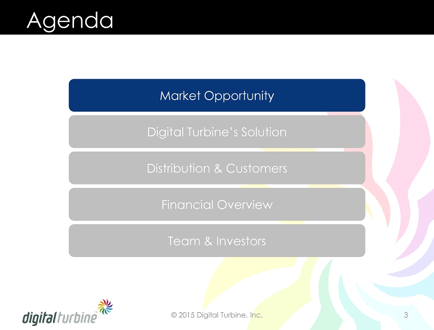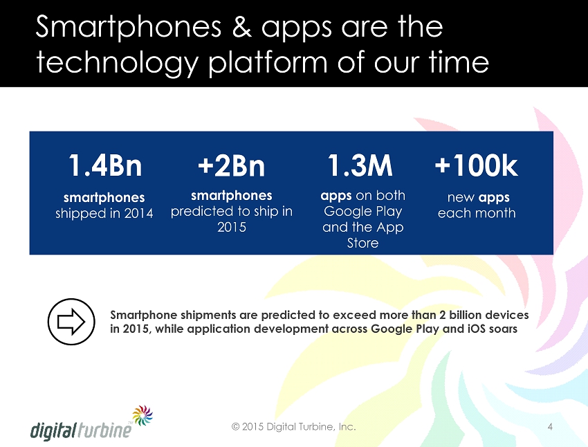 Agenda Market Opportunity Digital Turbine’s Solution Distribution & Customers Team & Investors Financial Overview © 2015 Digital Turbine, Inc. 3