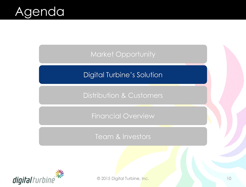 Agenda Market Opportunity Digital Turbine’s Solution Distribution & Customers Team & Investors Financial Overview © 2015 Digital Turbine, Inc. 10