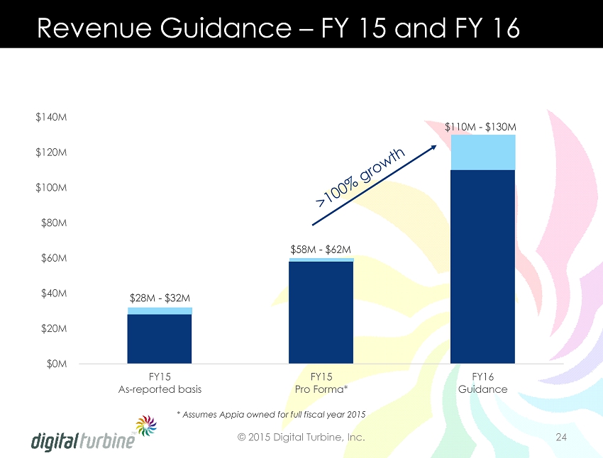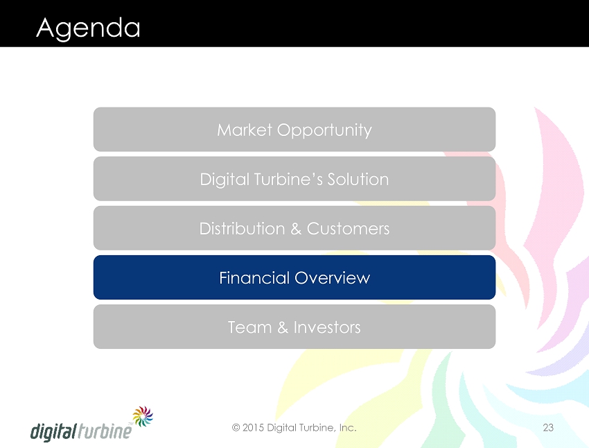 Agenda Market Opportunity Digital Turbine’s Solution Distribution & Customers Team & Investors Financial Overview © 2015 Digital Turbine, Inc. 23