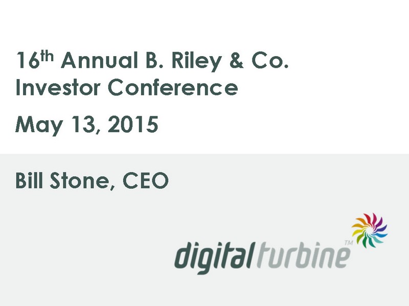 1 6 th Annual B. Riley & Co . Investor Conference May 13, 2015 Bill Stone, CEO