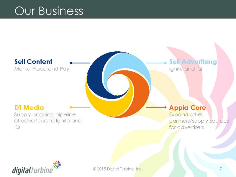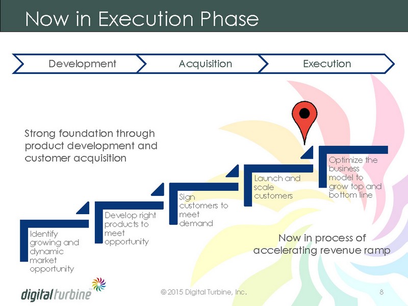 Appia Core Expand other partners/supply sources for advertisers Sell Advertising Ignite and IQ Sell Content MarketPlace and Pay DT Media Supply ongoing pipeline of advertisers to Ignite and IQ Our Business © 2015 Digital Turbine, Inc. 7