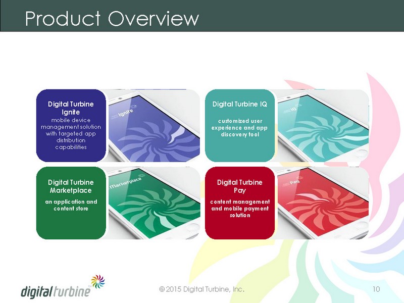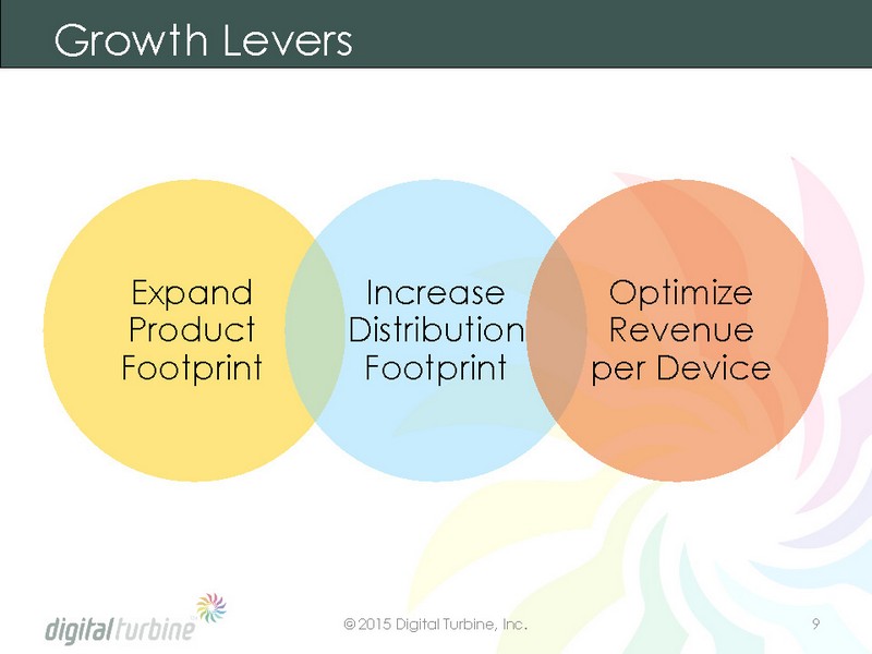 Growth Levers Expand Product Footprint Increase Distribution Footprint Optimize Revenue per Device © 2015 Digital Turbine, Inc. 9