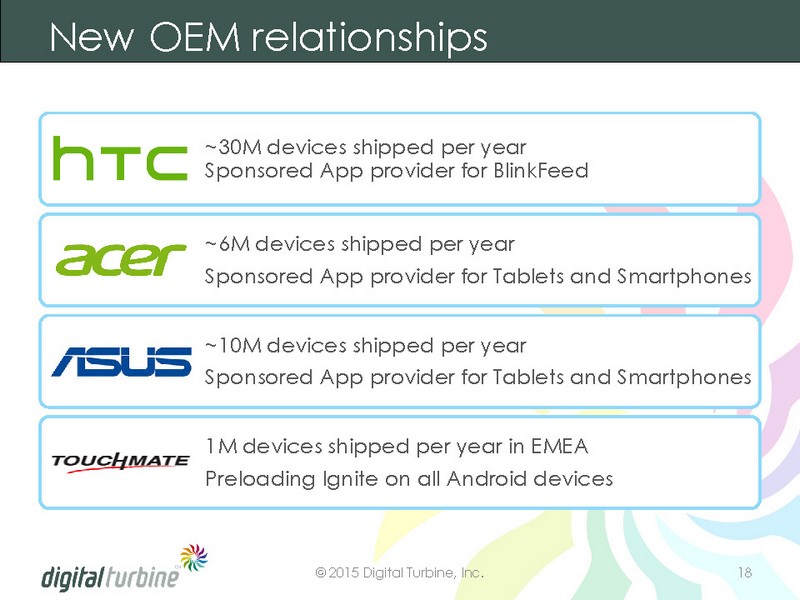 Operators and Distributors Leveraging the DT Media Platform © 2015 Digital Turbine, Inc. 17