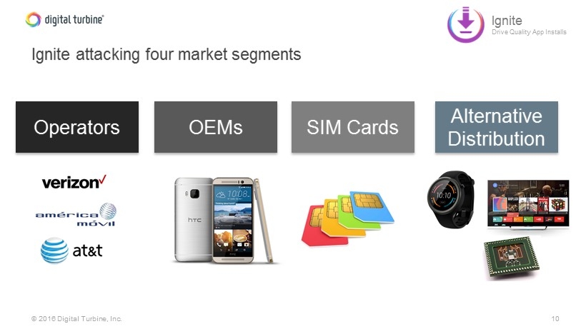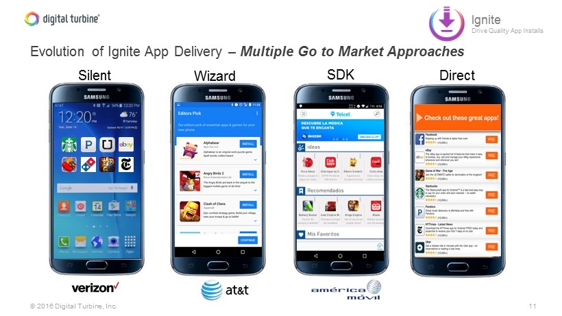 10 © 2016 Digital Turbine, Inc. Ignite attacking four market segments Operators OEMs SIM Cards Alternative Distribution Ignite Drive Quality App Installs