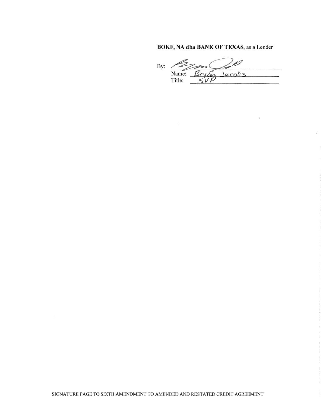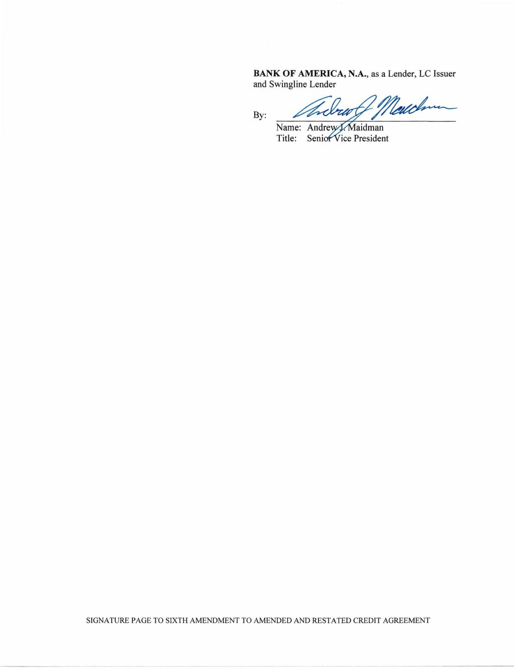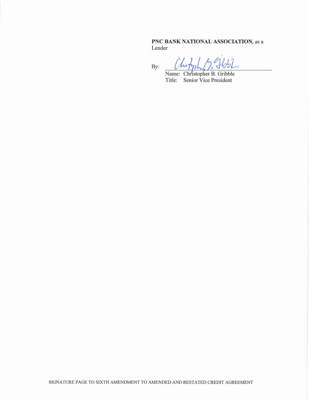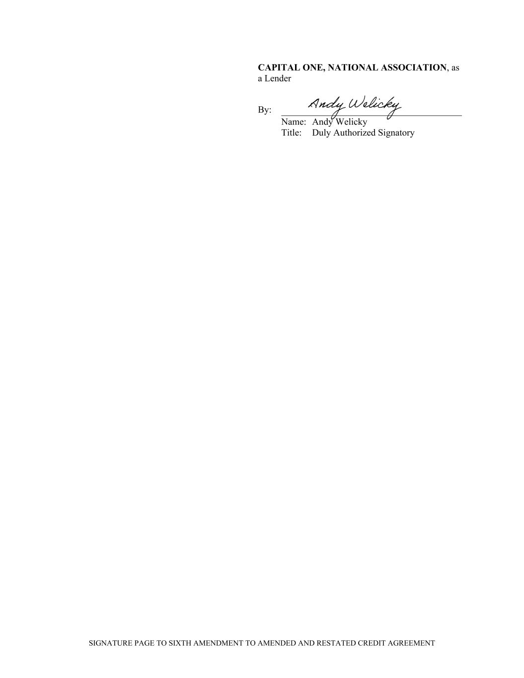 SIGNATURE PAGE TO SIXTH AMENDMENT TO AMENDED AND RESTATED CREDIT AGREEMENT CAPITAL ONE, NATIONAL ASSOCIATION, as a Lender By: Name: Andy Welicky Title: Duly Authorized Signatory